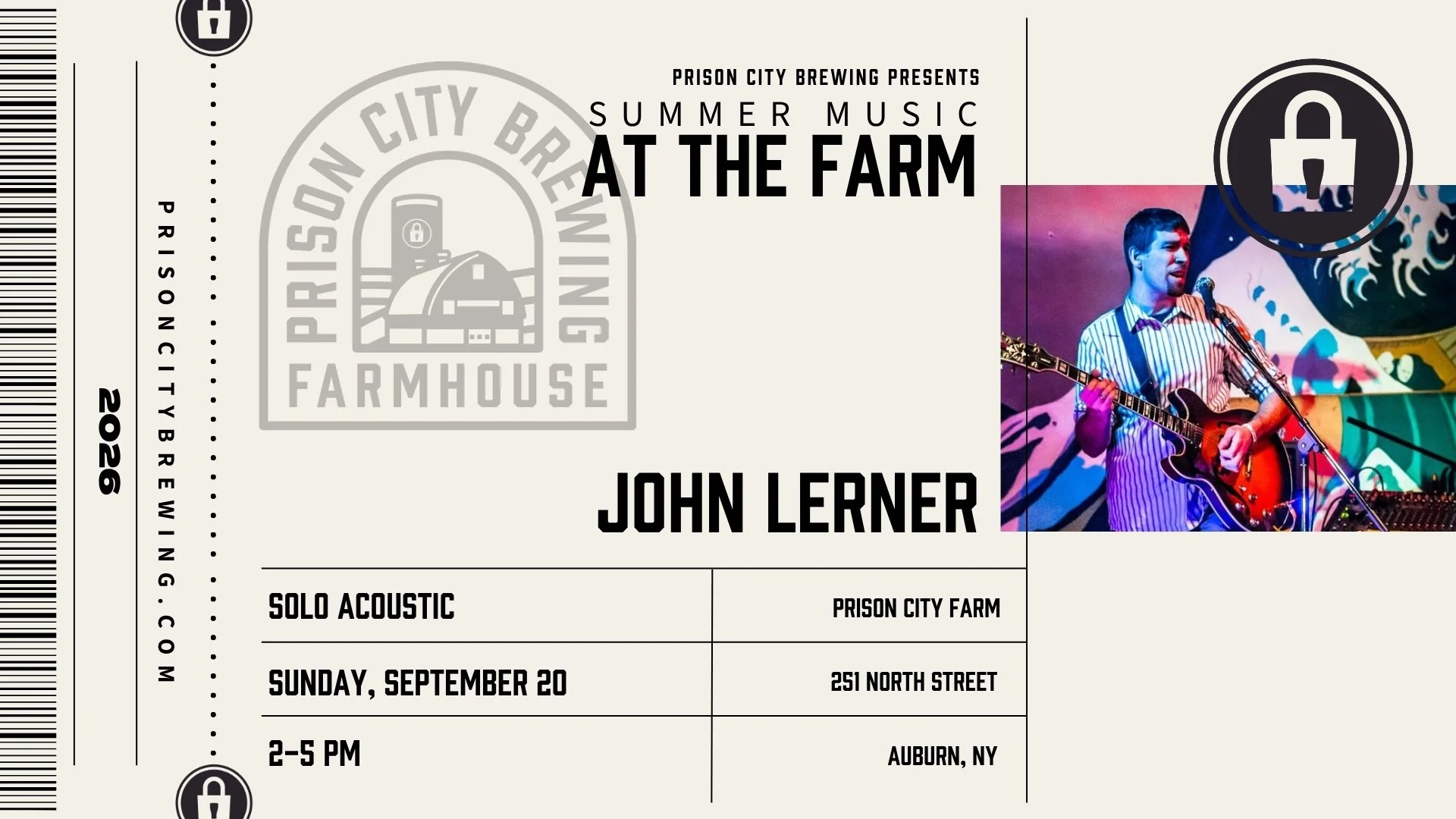 John Lerner Sunday, September 20, 2026 2:00 PM 5:00 PM Prison City North St. Farm 251 North Street Auburn, NY, 13021 United States (map) Google Calendar ICS summer music at the farm summer music at the farm